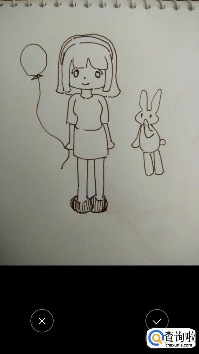 选择或拍下自己想要插入的线稿照片,再点击右下角的对号就可以了,这样我们就可以看到线稿图片已经出现在绘画app的空白图层中了,然后我们需要点击图层栏上方的加号,添加一个新的图层在上面。