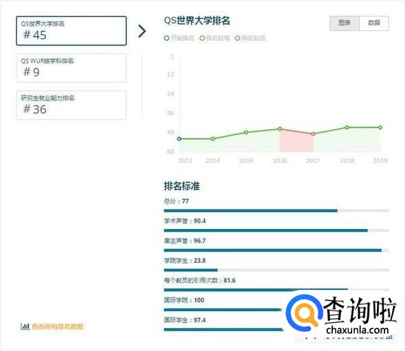 注:QS世界大学排名是世界公认最具影响力的全球性大学排名之一,主要评价指标为:学术领域的同行评价(40%)、全球雇主评价(10%)、单位教职的论文引用数(20%)、教师/学生比例(20%)、国际学生比例(5%)、国际教师比例(5%)