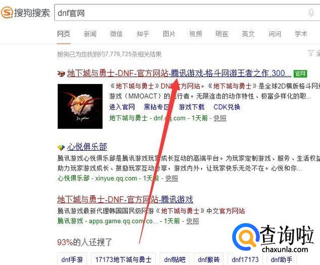 进入之后,搜索“DNF官网”,点击并进入,如图所示。