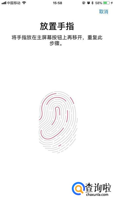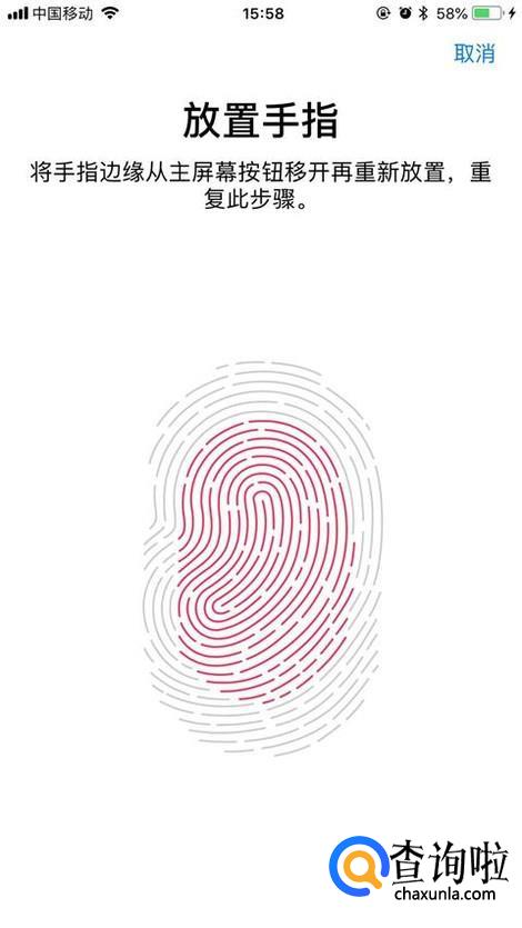 接着按照提示把我们的手指放到Home键上,如下图所示。