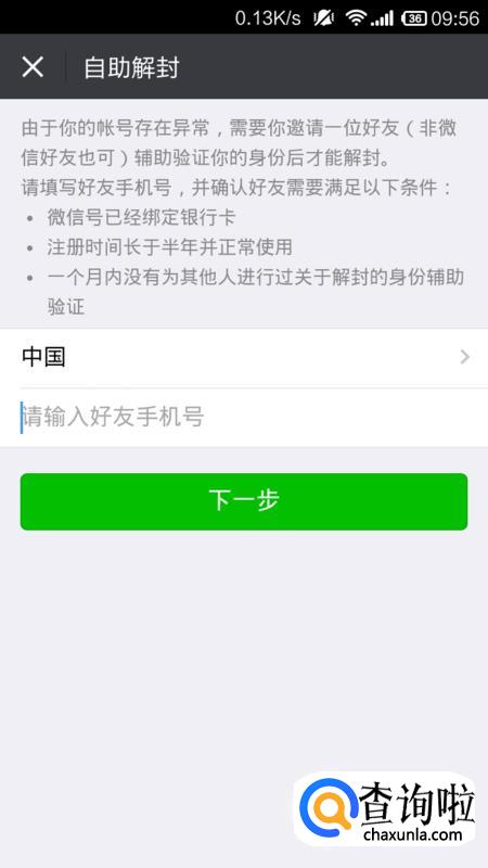 进入自助解封流程,按提示输入手机号码。