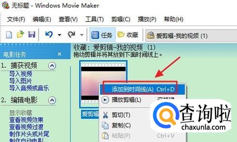 添加以后,我们选择视频,然后点击鼠标右键“添加到时间轴”上,然后软件左下角的“视频”编辑出即可看到这则视频的缩列图形式了;