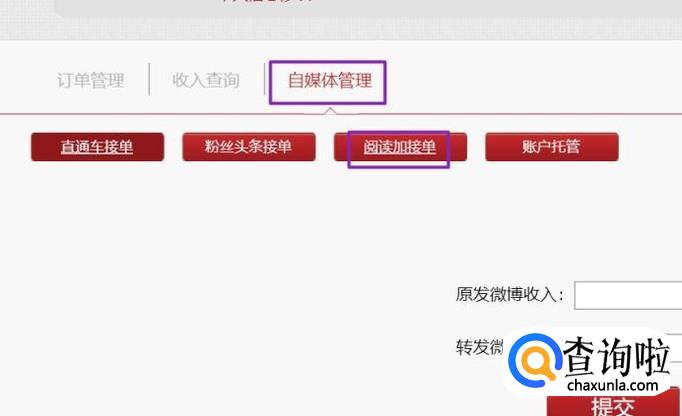 之后我们点击自媒体管理,然后我们点击阅读加接单;