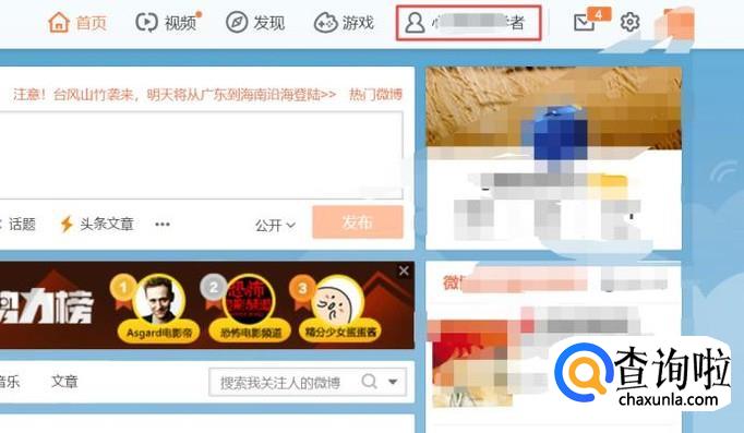 首先,我们用电脑上面的浏览器登录新浪微博,之后我们点击图示中的那个位置;