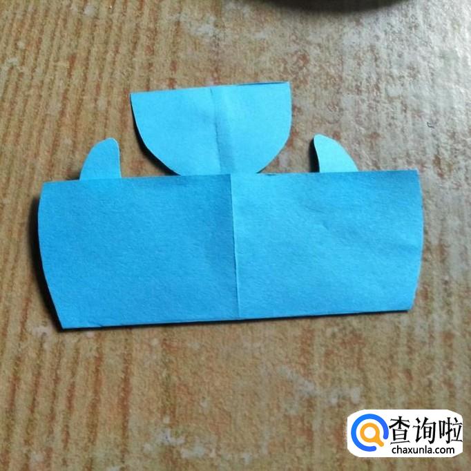 把鱼鳍向下折,鱼尾也向下折,折好后的鱼,如下图所示。