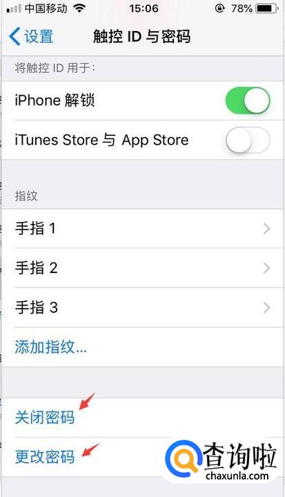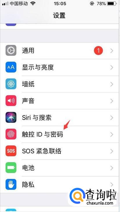 在设置里面一直往下拉,知道看到触控id与密码就点击进去。