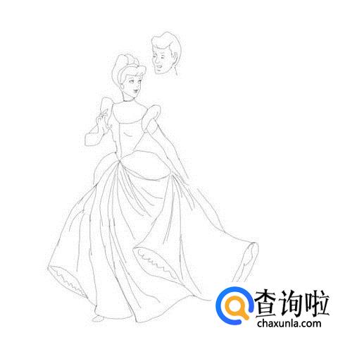 先画出公主的头发,然后再画出公主的面部,如图所示: