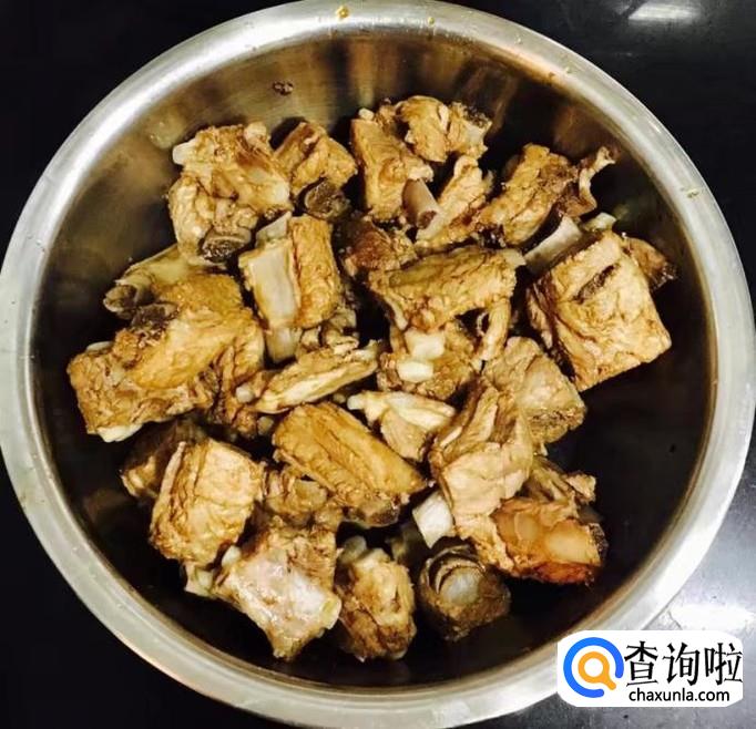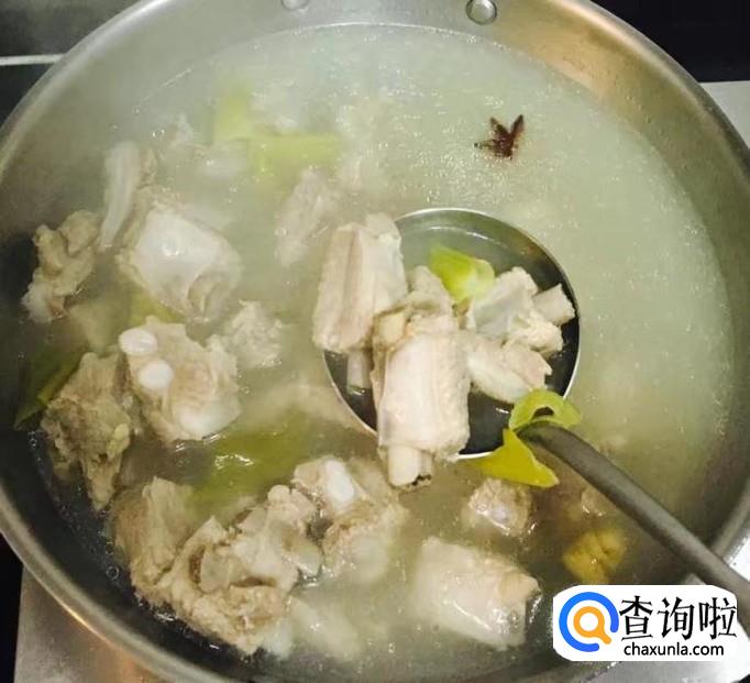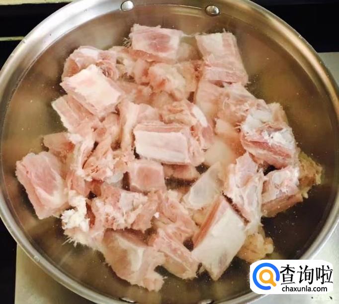 猪肋排适量斩成小块冲洗干净,凉水下锅煮至沸腾撇净血沫捞出用水反复冲洗干净杂质