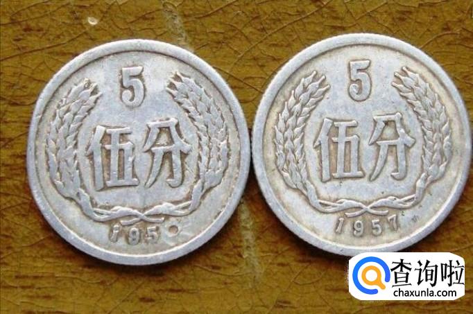 5分钱硬币。1955年5分硬币回收价格为380元;1956年5分硬币回收价格为180元;1957年5分硬币回收价格为300元;1974年5分硬币回收价格为15元;1976年5分硬币回收价格为10元。2、1979年5分硬币回收价格为5200元;1980年5分硬币回收价格为600元;1981年5分硬币回收价格为5000元;1982年5分硬币回收价格为20元;1983年5分硬币回收价格为8元;1984年5分硬币回收价格为8元;1985年5分硬币回收价格为6元。