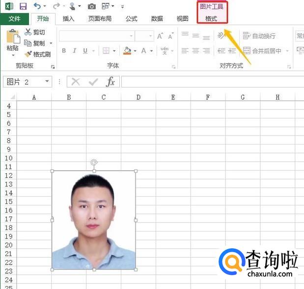 插入照片以后点击它,然后工具栏会多出来一项"图片工具格式",如下图;
