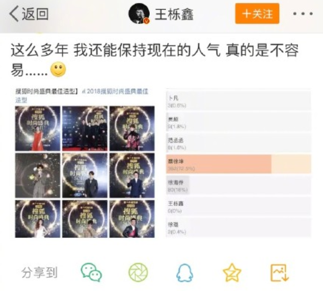 而这个词条上了热搜之后,王栎鑫一跃跑到了搜狐时尚盛典最佳造型的榜首,可以说是“扬眉吐气”了,哈哈哈哈,但是苏醒仍然人气堪忧。因此,苏醒本人回应了,苏醒回应全文如下: