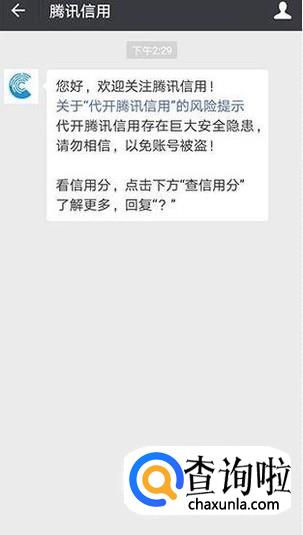 首先我们需要在手机微信里面搜索“腾讯信用”然后进行关注。