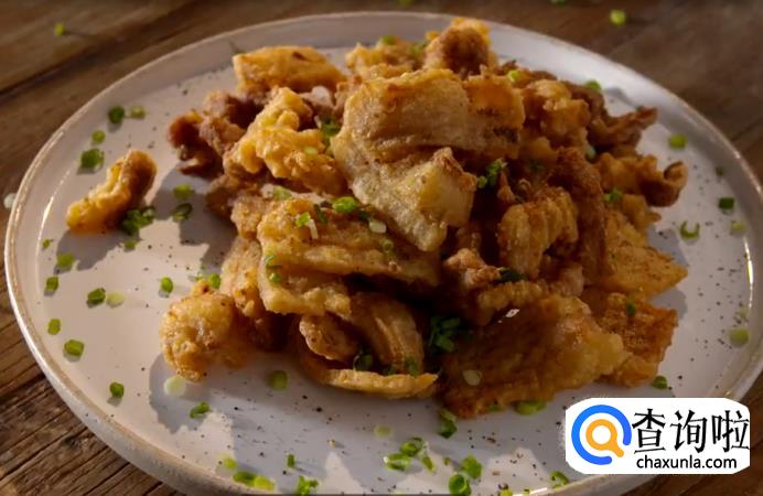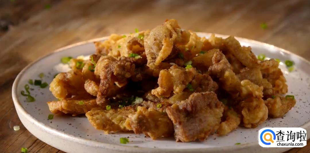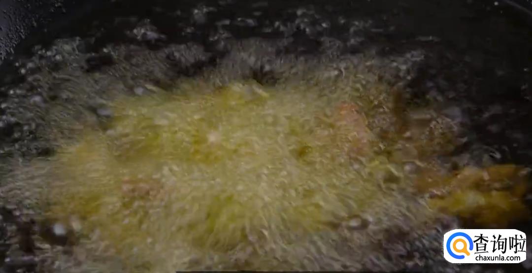 油温烧至七成熟,将肉片下油锅继续炸至两面金黄,就可以捞出摆盘了。
