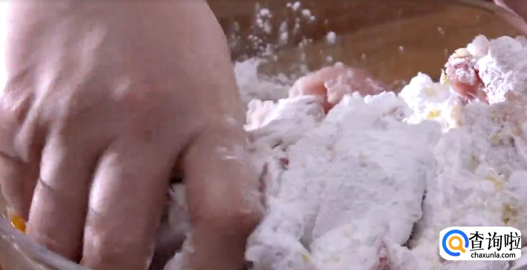 3、腌制的时候不加水,只用鸡蛋和淀粉,这样酥肉包裹的更均匀,炸的时候不至于皮肉分离。