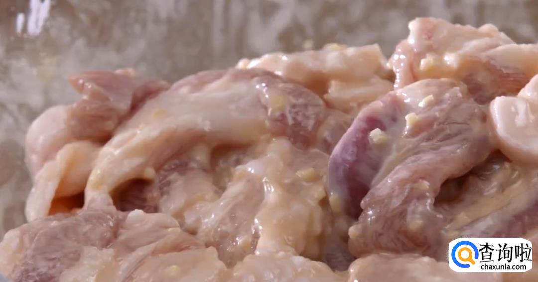 姜片切成岁颗粒,倒入肉中。