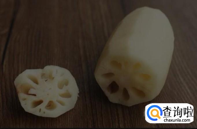 新鲜较短节的莲藕清洗干净,用刮皮刀刮去其外皮,然后用刀切下头部的一部分,如下图所示。