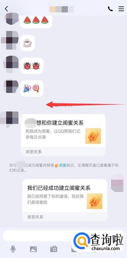 在聊天界面,手指在屏幕右边最边缘向左滑动进入闺蜜/基友页面。