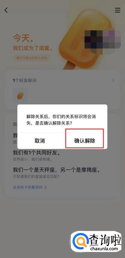 点击后下方会提示我们是否要解除关系,点击下方的确认解除关系。