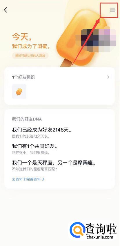 滑动后可以看到当前的关系,这时点击右上方的三个横的图标。