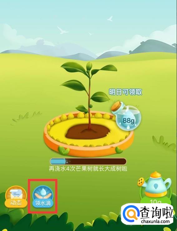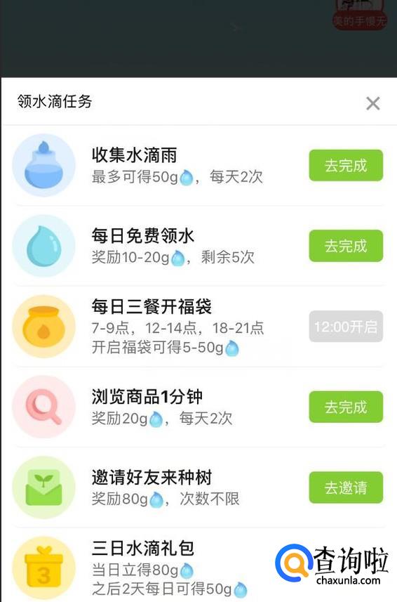 点击左下角的“领水滴”,可以通过做任务领取相应的水滴。