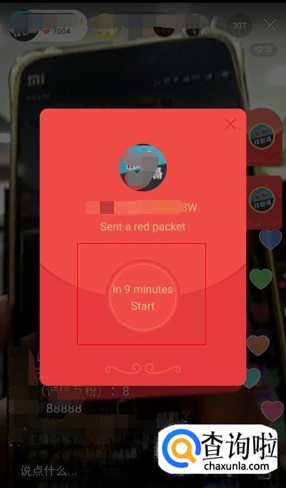 我们点击主播间右上角的红包,点开后,我们会发现有一个抢红包倒计时。