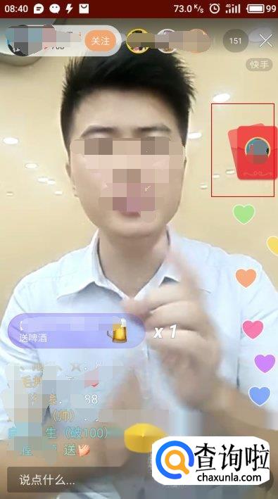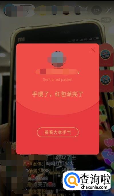 抢红包成功的话,会显示你抢到多少快币,用户可以在你送礼物的界面查看快币余额。如果没有抢到会显示“手慢了,红包派完了”。