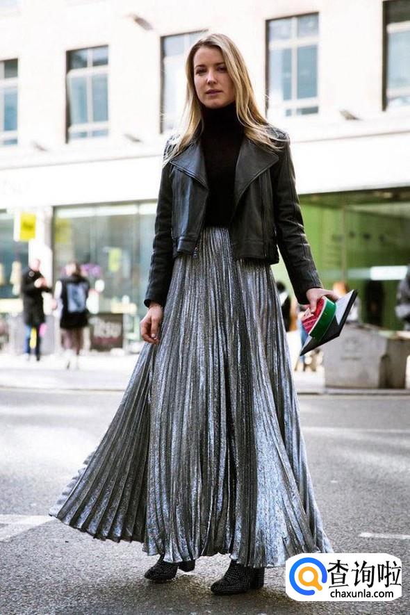百褶裙配皮衣外套。百褶裙搭配皮衣外套真的非常酷,这种搭配特别有个性,很多年轻女性喜欢这样的搭配。