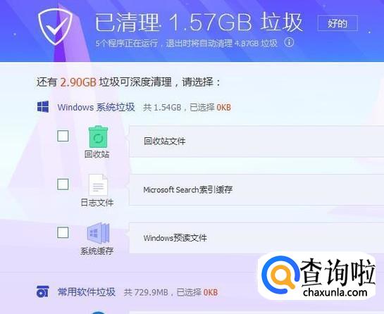 然后等待扫描垃圾完成,如下图所示。