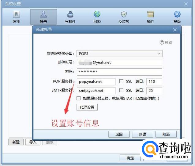 然后回到Foxmail新建账号界面设置账号的基本信息,如下图所示,这里服务器类型一定要设置上一步开启的类型