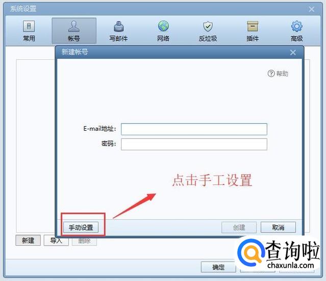 然后会弹出新建账号界面,输入邮箱账号密码Foxmail会自动配置,但是小编建议大家点击左下角的手动设置按钮进行手动配置,如下图所示