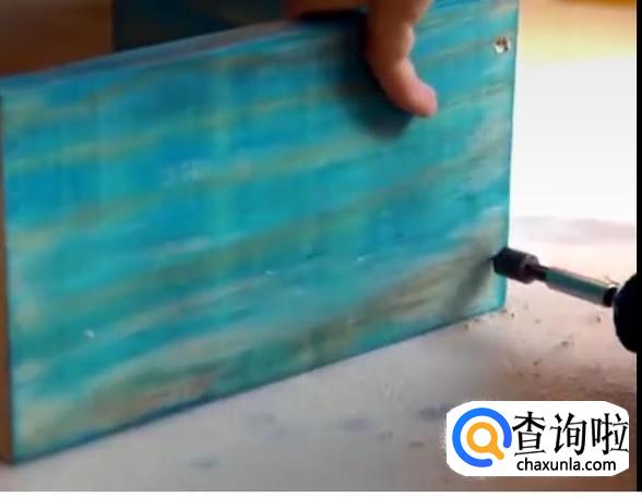 等到胶体干后再用电钻在木板上打孔。打2-3个即可。打后用螺丝固定住。