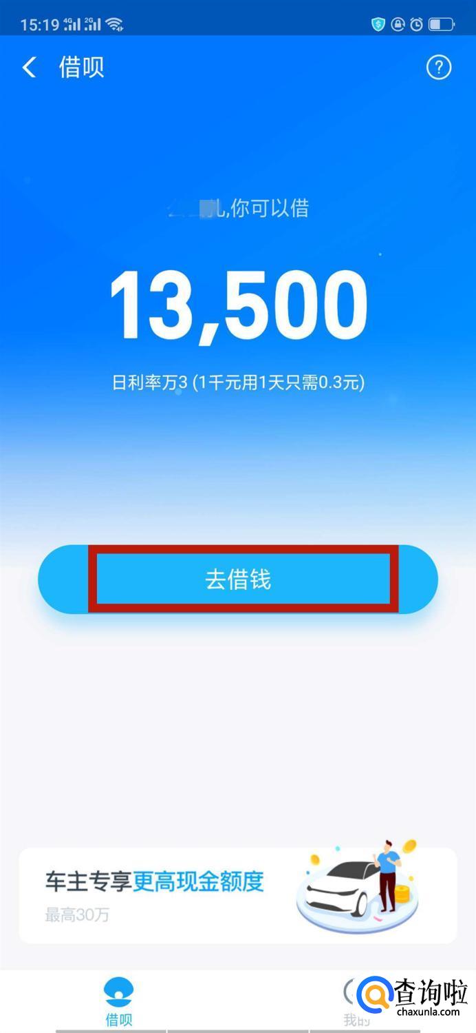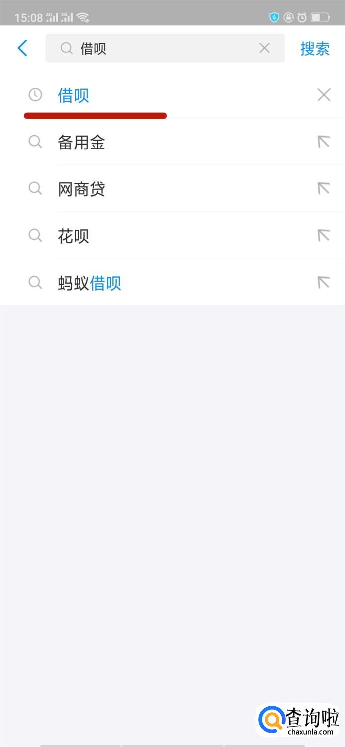 搜索栏搜索借呗,点击进入。