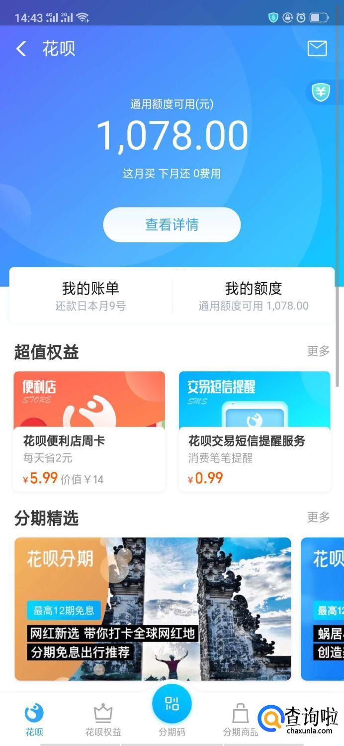可以看到进入后会显示花呗余额,可以用于一般生活消费等,但却是无法进行提现的。