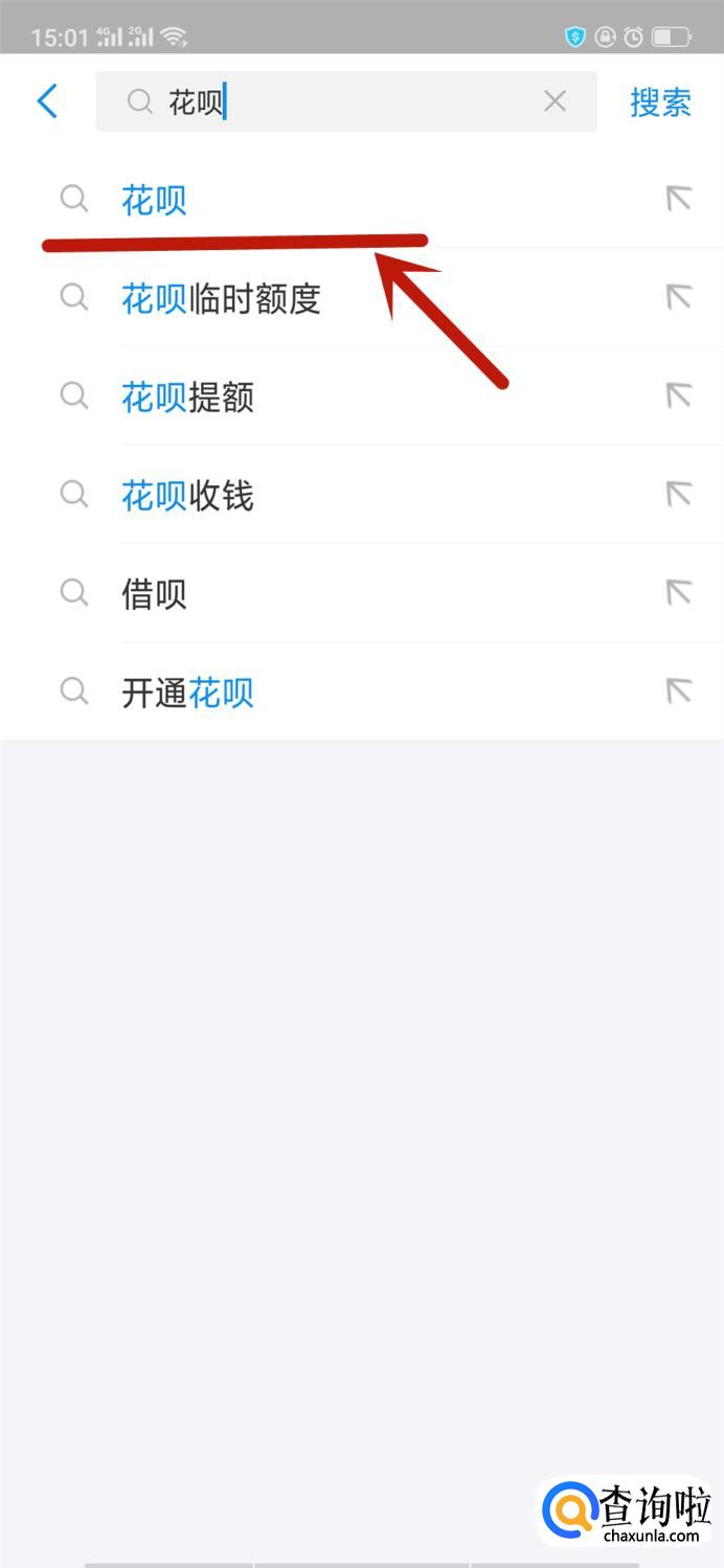 输入花呗进行搜索,选择此项点击进入。