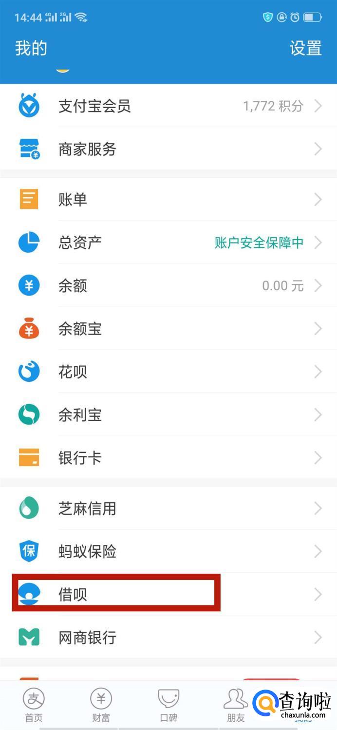 那么我们可以看一下如何在借呗体现,找到“我的”—“借呗”,点击进入。