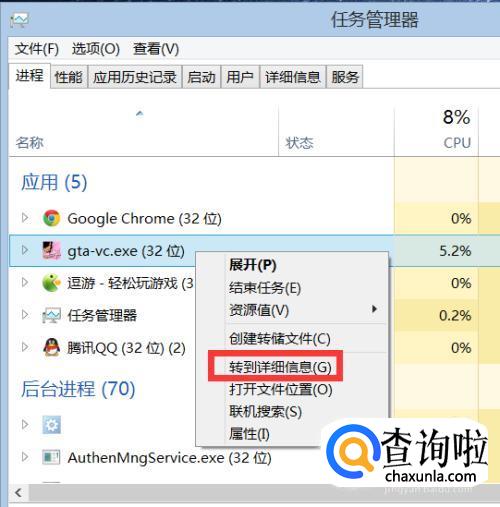 找到之后,右击,找到“转到详细信息”。