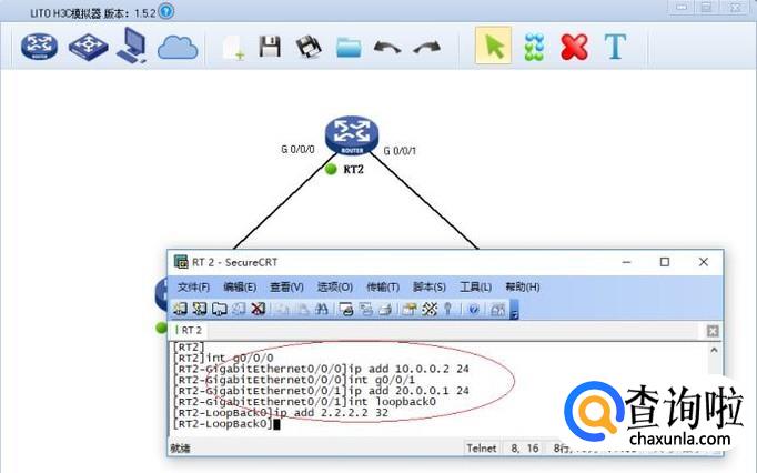如图所示,路由器2配置各个端口网络地址。