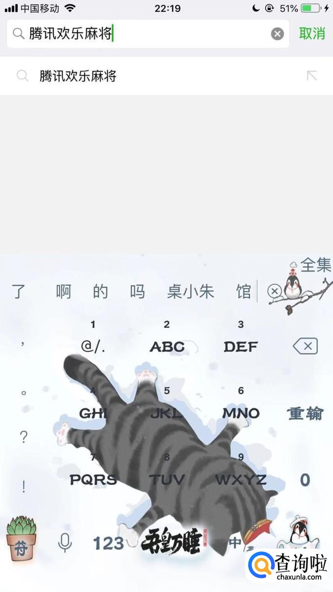 然后输入腾讯欢乐麻将并点击搜索,如下图所示。