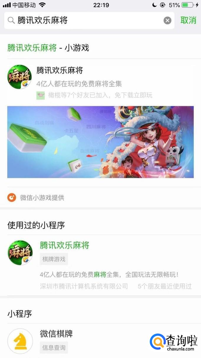 接着点击小程序腾讯欢乐麻将,如下图所示。