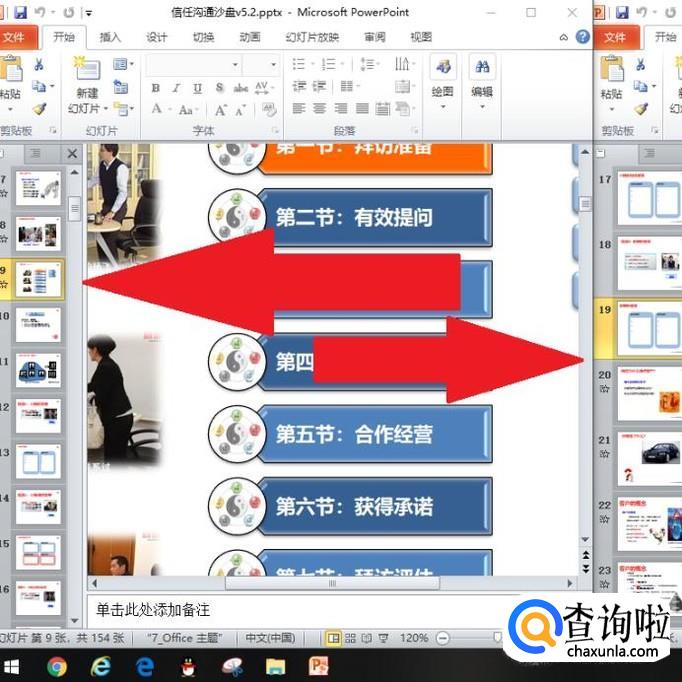 首先把两个PPT文件同时打开,然后确定需要复制的幻灯片和粘贴的位置。在这里我们把左边PPT第九张的幻灯片复制到右边PPT第十九张后面。
