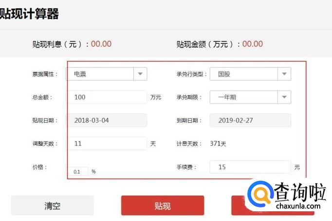 输入票据属性、票据金额、承兑期限、贴现日期、到期日期等相关信息。