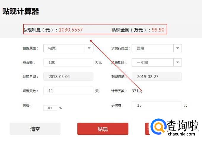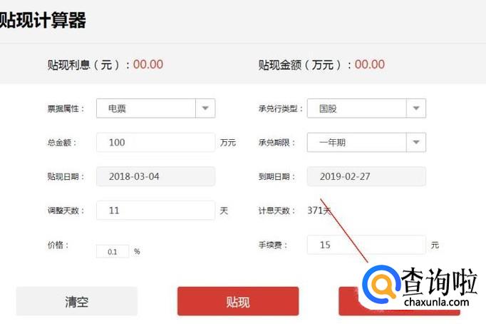 在搜狗搜索引擎中输入关键词“票据贴现计算器”