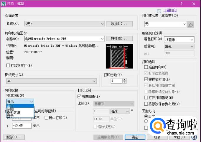 然后点击图中蓝色位置,选择到窗口,选择好后会跳转到图二,点击左键框选需要打印的文件。
