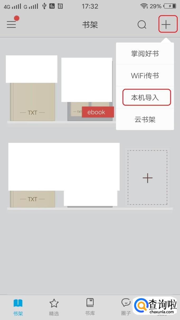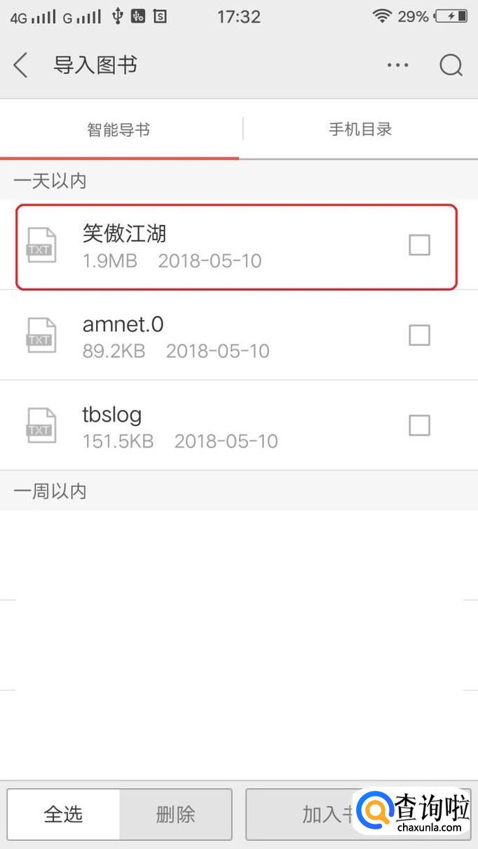 打开手机阅览器,点击右上角“+”,选择“本机导入”,找到小说添加进书架就可以阅读了。