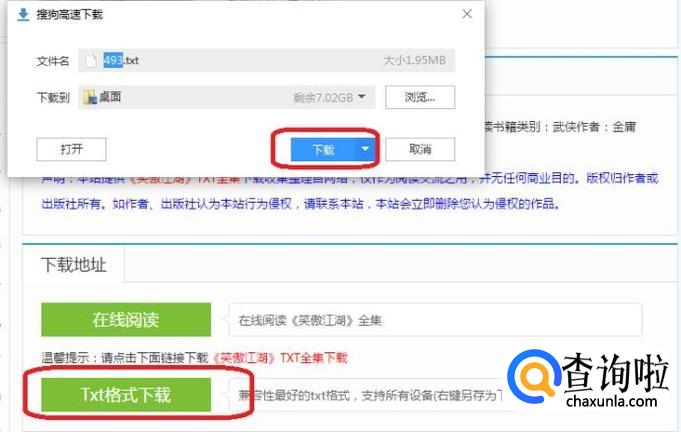 首先,在电脑上搜索、下载小说,比如说我下载一部“笑傲江湖”,下载完以后放到电脑桌面上,把小说名字改成正确书名。