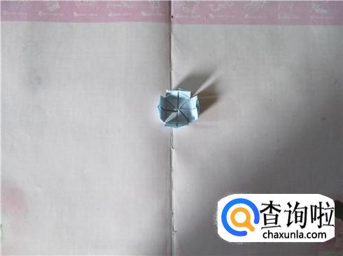 然后用同样的方法进行折叠,同样也会形成一个小正方形。将这个小正方形翻到背面,在背面会发现,正方形的四个角都有一个小正方形,接着将这四个小正方形进行翻折,形成一个小的长方形,最后就会形成一个不规则的图形。