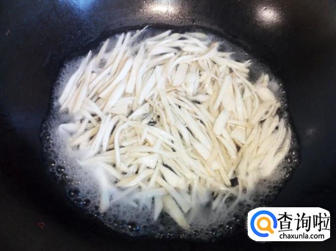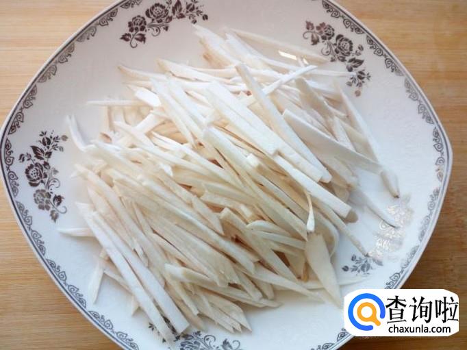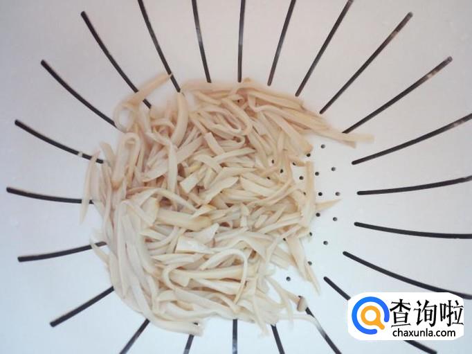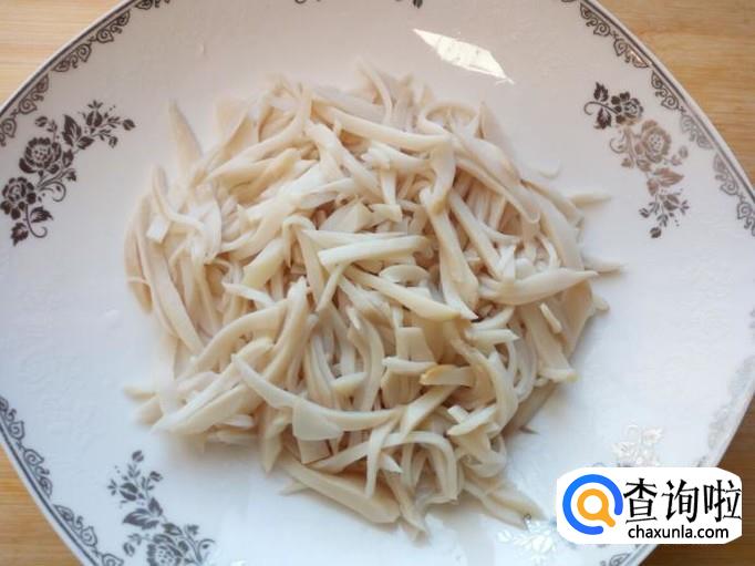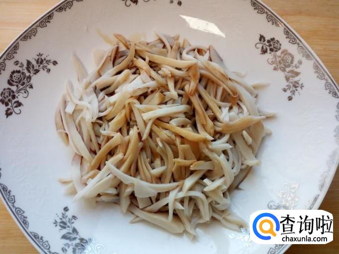 杏鲍菇收拾清洗干净,控干水分,切成丝。