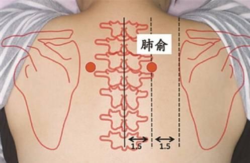操作时,用食、中二指端在穴上按揉,约揉15-30次,用两手大拇指腹自肺俞穴沿肩胛骨后缘向下分推,约分推30-50次。取穴时一般采用正坐或俯卧姿势。