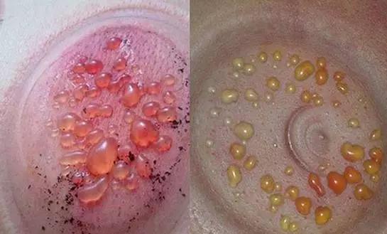 水泡的大小和数量在很大程度上反应了机体内痰饮水湿的情况。水泡比较明显,数量较多,色白,周围皮肤温度不高则为寒湿证;水泡不太明显,数量较少,色微黄,或者浑浊,周围皮肤温度较高则为湿热证。