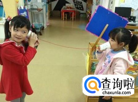 把绳子抻好,一个简单的传话筒就做好了,每个小朋友拿着一个纸杯,把绳子抻开,就可以玩传话的游戏了。